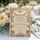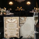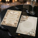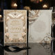 Establece el tono para tu evento formal de etiqueta con este diseño sofisticado, que presenta cisnes simétricos y ornamentación clásica en tonos neutros cálidos.