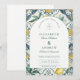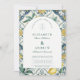 A fresh and elegant design inspired by sun-drenched Mediterranean gardens, featuring hand-painted lemons, soft greenery, and a refined arched layout. The warm neutral background paired with crisp citrus accents creates a light, romantic atmosphere—perfect for a summer celebration. With its balance of natural textures and timeless typography, this design is ideal for couples drawn to Italian-inspired weddings, coastal settings, and effortless, sunlit elegance.
