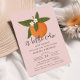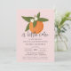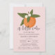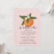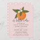 Esta adorable ducha de bebé tiene un diseño naranja pintado a mano con flores sobre un fondo de color personalizado (que se muestra en rosa rubor). La parte posterior contiene un patrón de flores naranjas simple y concordante. ¡Genial para la mamá esperando una niña pequeña! Obra de arte/Ilustracion de Tracey Khalei / Orabella Prints.