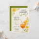 El diseño de una ducha con flores de color amarillo acuático, alegre y encantadora, y un cóctel naranja spritz. Perfecto para una celebración divertida y moderna con una vibrante primavera o verano.