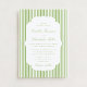 This elegant wedding invitation features classic vertical citrus-green stripes paired with a soft matching ornamental frame, creating a refined and timeless design inspired by garden celebrations and stylish summer weddings. The fresh green palette feels light, joyful, and sophisticated — a look many women choose for romantic outdoor ceremonies, estate weddings, and country club receptions.