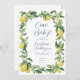 Esta dulce y elegante ducha de bebé invita a los limones vintage, las flores y la vegetación entrelazados para enmarcar un texto cuidadosamente elegido. Las mariposas azules revolotean entre el diseño botánico. En el reverso aparecen algunos limones más y texto adicional. Personalice el guión azul para sus necesidades. Consulte la colección para coordinar productos. ¡Ciao Bebé!