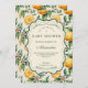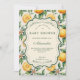 A fresh and cheerful baby shower design inspired by sunny citrus orchards. Bright lemons, delicate blossoms, and soft green leaves frame a classic scalloped centerpiece, creating a warm and inviting look. Perfect for spring and summer celebrations, this design blends natural charm with elegant typography for a timeless feel. A beautiful choice for honoring the mother-to-be in a vibrant, joyful setting.
