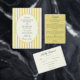 This statement wedding design is perfect for couples looking for a chic, cheerful, preppy, or vintage design with a bold color palette. The eye-catching design features rich, vertical lemon yellow and ivory stripes paired with a charming scalloped edge oval, giving it a unique, classic-with-a-twist aesthetic.