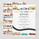 A cute hand drawn illustration of city transportation vehicles, cars, trucks on the road. A multicolored design featuring city cars, construction trucks, tractors, bus, police car, garbage truck, fire truck and much more. An ideal design for kids bedroom, playroom and nursery decor. A cute kids city transportation vehicles birthday theme design and customized gift for anyone who loves transportation, vehicles, cars, trucks and hand drawn illustrations.