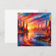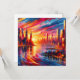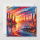 Una vibrante puesta de sol sobre un ajetreado paisaje urbano, con cálidos tonos naranja y rosa que reflejan los rascacielos de cristal.