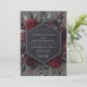 This design evokes a sense of moody, gothic romance. A stunning arrangement of deep claret red roses and dark, shadowy blossoms emerges from a charcoal background. Muted greenery and small berry accents add depth to the dramatic and elegant composition, perfect for a sophisticated affair.