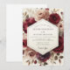 Experience a mood of timeless romance with this stunning artistic design. A painterly arrangement of rich claret and soft blush roses is accented with muted greenery. The dark, dramatic florals create a vintage, still-life feeling, perfect for an elegant and sophisticated union that evokes old-world charm.