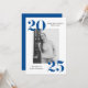 Invite a los huéspedes a su fiesta de graduación con nuestras modernas invitaciones a la fiesta de graduación 2025. La elegante fiesta de graduación invita a mostrar la foto del graduado enmarcada en blanco con 2025 en negritas letras azules en las esquinas superior izquierda y inferior derecha. Personalice la parte delantera de la fiesta de graduación con fotos agregando el nombre del graduado y el nombre de la escuela. La invitación se invierte para mostrar los detalles de su fiesta con letras blancas en un fondo azul sólido.