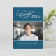Celebre a su graduado con esta moderna invitación para una fiesta de graduación con fotografía que presenta una elegante tipografía “Clase de 2026” en un rico tono azul turquesa. Personalice el nombre del graduado, la escuela y los detalles de la fiesta para un aspecto refinado que mantenga la foto en primer plano. El diseño de la parte trasera coordinada utiliza un diseño gris limpio para que los detalles del evento y la información de RSVP sean fáciles de leer. Perfecto para fiestas de graduación y celebraciones de puertas abiertas.
