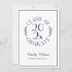 Envía elegantes invitaciones de graduación para la celebración de tu graduado con un emblema de tipografía chic en azul marino sobre blanco que dice: GRADUADO DE LA PROMOCIÓN DE [AÑO] con las palabras curvadas alrededor del año en el centro y hojas botánicas curvadas a lo largo de cada lado del diseño circular. Debajo del emblema está el nombre del graduado en una fuente de letra script de color azul oscuro y su escuela en una fuente serif elegante. Un fino rectángulo azul marino crea un borde cerca del borde.