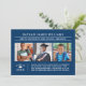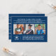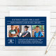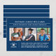 Tres invitaciones a una fiesta de graduación fotográfica presentan una tipografía elegante con 3 fotos favoritas de la clase de graduados 2025. Personalice el texto blanco moderno con el nombre del graduado, una invitación de su graduación de secundaria y una invitación a un fiesta de posgrado. Una gorra con tassel da paso al diseño y las piñones blancas que se visten en la parte trasera de la tarjeta. El color de fondo azul marino se puede modificar para que coincida con las fotos o con el color de la escuela.