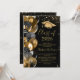 Invitaciones de fiesta de graduación elegantes con un fondo negro elegante, brillo dorado, globos y una plantilla de texto moderna que es fácil de personalizar. Artículos coincidentes disponibles.