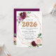 Invitación a la fiesta de graduación de letra de globos rosa oro Floral púrpura ciruela femenino.