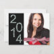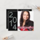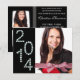 Aquí hay una invitación ultraderechosa, reluciente y brillante para una fiesta de graduación con varios adornos digitales de lujo para dar la ilusión de brillo y brillo. Una gran foto en el lado derecho parece estar envuelta con un purpurina falso de color bonito y ciego atado en un arco delgado, junto a grandes gemas de diamante brillantes dispuestas para formar letras para 2014 con pequeños destellos y destellos de luz. El reverso tiene dos áreas de fotos adicionales, y una cinta correspondiente que resalta los detalles del fiesta de grado.