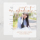 Es mejor elegir una foto vertical con mucho espacio encima de la cabeza del jardín y una habitación debajo. Una invitación simplista de graduación, una ceremonia o una invitación de fiesta, con la foto, el nombre y la escuela del graduado en el frente de la tarjeta. La apariencia de la hoja de bronce se ha creado digital en un tipo de letra de guión moderno para la clase de 2025.