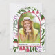 Clase de 2025 arco bohemio y coloridas flores folclóricas retro Graduación Invitación arcada. Esta invitación a la celebración de la clase 2025 incluye un arco de boho y coloridas flores folclóricas retro, con texto de personalizable para un toque personal. El fondo de la invitación se compone de alegres flores de folclore retro en tonos magenta y verde, que le dan un toque festivo al diseño. El texto 'Grad Fiesta' se muestra audazmente en la invitación. La parte de atrás de la invitación incluye un espacio para una foto del graduado dentro del arco de boho, creando un significativo keepsake.