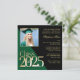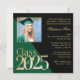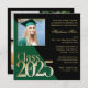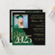 Moderna y elegante, clase de 2023 de oro, invitación o invitación de fotos en negro y verde con colores editables y diseño inclinado y marcado acento 2023. Cubo cuadrado de fotos en la parte posterior con espacio para 4 fotos de color completo adicionales.