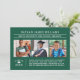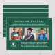 Tres invitaciones a una fiesta de graduación fotográfica presentan una tipografía elegante con 3 fotos favoritas de la clase de graduados 2025. Personalice el texto blanco moderno con el nombre del graduado, una invitación de su graduación de secundaria y una invitación a un fiesta de posgrado. Una gorra con tassel da paso al diseño y las piñones blancas que se visten en la parte trasera de la tarjeta. El color de fondo verde oscuro se puede modificar para que coincida con las fotos o con el color de la escuela.