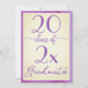 Envía invitaciones de graduación personalizables y geniales para la celebración de tu graduado con palabras de escritura en acuarela violeta sobre un fondo dorado amarillo pálido que parece envejecido con un borde de acuarela violeta a cada lado. Personaliza el año en la parte frontal con un diseño de texto en cursiva negrita que dice: Graduado de la promoción de [AÑO]. Reemplaza el texto de muestra en el reverso de la invitación para tu graduado y evento. La parte posterior presenta la palabra "celebrar" en una fuente de escritura en acuarela violeta. Personalízalo para cualquier tipo de graduado: escuela secundaria, universidad, escuela de posgrado, facultad de derecho, facultad de medicina o escuela de oficios.