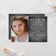 Esta invitación de la graduación de la foto 5x7/invitación de moda del fiesta tiene un diseño de la pizarra del estilo del vintage en la derecha. En el top y la parte inferior, hay un diseño del remolino del flourish. La clase de 2015 se escribe en el top, con todos sus detalles adaptables de la invitación/del fiesta de la ceremonia de graduación en el centro. A la izquierda, usted puede personalizar esto con una fotografía del graduado.