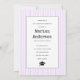 Clase de 2023 tipewriter lilac rayas púrpura invitación a graduación foto. En la parte posterior se han colocado motivos lilos y blancos con rayas.