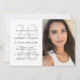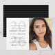 Para tu graduado de secundaria o universitario, esta tarjeta de foto en blanco y negro se puede usar como una invitación para una fiesta de graduación, una invitación de graduación o ambos. Con un gran año en gris detrás de los detalles del fiesta, hay espacio para que los padres anuncien su grado, un nombre completo y todos los detalles del fiesta. La espalda tiene un patrón de rayas blancas. Otros colores disponibles exclusivamente en la colección de Lea Delaveris Design.