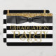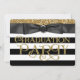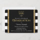 Hermoso arco negro con audaces rayas blancas y negras modernas y fondo purpurina dorado con lujosa tipografía de escritura purpurina oro Clase de invitación a graduarse 2015. Esta invitación de graduación en negro y oro se personaliza fácilmente para tu evento simplemente añadiendo tus detalles en el estilo de letra y color, y la redacción de tu elección.