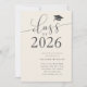Elegante y simple plantilla de invitación a la fiesta de graduación para graduados de secundaria o universitarios! El texto tipográfico contra el fondo crema dice "Clase de 2025" en letra de escritura moderna. Personalizar este producto agregando el nombre del graduado, la escuela y la información de los fiestas.