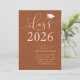 Elegante y simple plantilla de invitación a la fiesta de graduación para graduados de secundaria o universitarios! El texto tipográfico contra el fondo de terracota dice "Clase de 2025" en letra de escritura moderna. Personalizar este producto agregando el nombre del graduado, la escuela y la información de los fiestas.