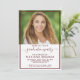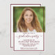 Elegante invitación para la fiesta de graduación de fotos de guion para la clase del tipo de letra burdeos de la plantilla 2024 y una foto del graduado, personalizado el color de fondo.