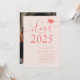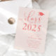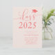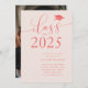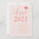 Elegante y simple plantilla de invitación a la fiesta de graduación para graduados de secundaria o universitarios! El texto de la tipografía sobre el fondo rosado dice "Clase de 2025" en letra de escritura moderna. Personalizar este producto agregando el nombre del graduado, la escuela y la información de los fiestas.