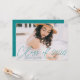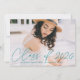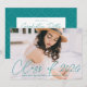 Invite a los huéspedes a celebrar el jardín con nuestras elegantes invitaciones para graduación de fotos. La parte delantera de las invitaciones a la fiesta de graduación muestra la foto del graduado con "Clase de 2025" en un verde azulado y moderno guión de caligrafía. Personalice la parte delantera de la moderna fiesta de graduación agregando el nombre del graduado, el nombre de la escuela y el año de graduación. La invitación se invierte para mostrar los detalles de tu fiesta de graduación y un patrón geométrico punteado verde azulado y blanco a la moda. El diseño es perfecto tanto para graduados de secundaria como universitarios.