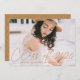 Invite a los huéspedes a celebrar el jardín con nuestras elegantes invitaciones para graduación de fotos. La parte delantera de las invitaciones a la fiesta de graduación muestra la foto del graduado con "Clase de 2025" en un overlay de escritura de caligrafía moderna de oro. Personalice la parte delantera de la moderna fiesta de graduación agregando el nombre del graduado, el nombre de la escuela y el año de graduación. La invitación se invierte para mostrar los detalles de tu fiesta de graduación y un patrón geométrico punteado de oro y blanco a la moda. El diseño es perfecto tanto para graduados de secundaria como universitarios.