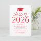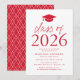 Invite a los huéspedes a celebrar el grado con nuestra moderna clase de invitados a la fiesta de graduación 2024. Las invitaciones incluyen un gorro de graduación en la parte superior con la "Clase de 2024" mostrada en letras rojas modernas. Personalice las invitaciones agregando el nombre del graduado, la escuela y los detalles de la fiesta de graduación. La fiesta de graduación de moda invita a revertir la vista para mostrar un estampado de enrejado rojo y blanco.