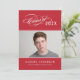 Celebre a su graduado con esta elegante invitación de fiesta de graduación que presenta un floreado guión de caligrafía de "Clase de" con el año en un clásico fondo rojo junto a un retrato de último año enmarcado por acentos de línea delgada. La parte posterior gris presenta un hermoso titular de guión "Celebre" con un segundo lugar para foto y todos los detalles de su fiesta. Texto totalmente personalizable en ambos lados.