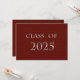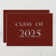 Clase de tarjeta 2025 con textura roja para el fondo y plata para el nombre. La parte posterior es una textura roja con letras blancas para las invitaciones a la fiesta de graduación.