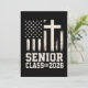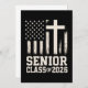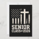 Diseño audaz de la clase superior 2026 con elementos de la bandera de EE. UU. y cruz. Ideal para estudiantes orgullosos de sus valores y listos para graduarse con fuerza.