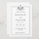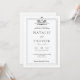 Esta invitación a la boda es parte de las tarjetas Classic White Wedding Invitation and Suite creadas por Simply Farmhouse Press. Su elegancia atemporal es ideal para un boda formal, pero también puede ser utilizada para una reunión semiformal o casual. Esta suite de invitados es sofisticada y sobria y cuenta con el monograma familiar del novio.