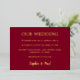 Invitación clásica a Relieve metalizado dorado Boda de Borgoña, fácil de personalizar el frente de la invitación con detalles del boda y los nombres de la pareja que se casa, utilizando la plantilla de personalización en línea antes de hacer el pedido. En la parte delantera de la invitación encontrarás un hermoso texto de Relieve metalizado metálico real sobre un bonito fondo burdeos, mientras que en la parte posterior de la tarjeta está el borgoña.