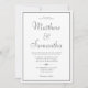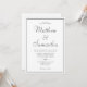 Clásica invitación formal y elegante de boda con un diseño tradicional con un borde y un formulario de texto formal con nombres caligráficos de escritura. Todo el texto es editable e impreso en un color gris oscuro que puede funcionar bien con los diferentes tipos de papel disponibles para un acabado de lujo. La parte posterior se puede dejar blanca o personalizada con texto o una foto haciendo clic en el botón para editar el diseño. Se ofrecen productos de la suite Invitación que coinciden.