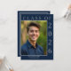 Una clásica pero moderna invitación a graduarse con la foto del personalizado de tu graduación. Con un toque de gris claro en azul marino oscuro y blanco, esta sencilla invitación es fácil de personalizar con tu propio texto y foto. Simplemente haga clic en "Personalizar esta plantilla" para crear la invitación de fiesta perfecta para honrar su grado de bachillerato o universitario.