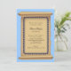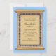 Una invitación clásica de pergamino con un borde de adorno azul.