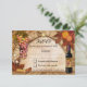 Tarjeta clásica de RSVP de viñedo con una pintura de una bodega con uvas, un corcho, hojas de otoño y flores. En la parte posterior hay una plantilla de código QR para permitir que sus invitados respondan en línea.