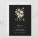 Esta clásica invitación a la fiesta de primer cumpleaños de los negros de flores silvestres es perfecta para una fiesta de cumpleaños moderna. El diseño muestra flores silvestres elegantes y elegantes de acuarela de diseño a mano, rosa y multicolor cuidadosamente dispuestas en bonitas ramblas.