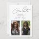 Celebra el éxito de tu graduación con esta elegante invitación a la fiesta de graduación moderna en blanco y negro. El frente presenta una tipografía sofisticada con espacio para dos fotos personales, mientras que el reverso resalta detalles fiestas junto con una elegante foto del graduado. El diseño minimalista, combinado con un guión manuscrito elegante, crea un aspecto atemporal y refinado. Perfecto tanto para graduados de secundaria como universitarios, esta invitación es totalmente personalizable para adaptarse al estilo único de su graduado.