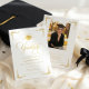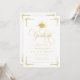 Celebre un notable hito académico con esta clásica invitación de graduación blanca y dorada, diseñada con elegancia atemporal y sofisticación formal. Con tipografía de escritura dorada ornamentada, acentos decorativos en las esquinas y un emblema de gorra de graduación, esta invitación hace una declaración impactante para un graduado de secundaria o universidad.