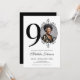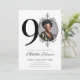 Clásico 90º cumpleaños Invitación a la foto de Personalizados blancos y negros. Embarque en un viaje de celebración atemporal con nuestra invitación de cumpleaños Classic Black and White. El diseño rebosa sofisticación con un florecimiento vintage que combina el encanto clásico a la perfección. Sus preciados recuerdos ocupan el centro del escenario con la función de fotografía personalizado, añadiendo un toque personal a esta elegante invitación. La paleta en blanco y negro crea un contraste sorprendente, realzando la estética vintage y asegurando una invitación tan de buen gusto como inolvidable. Únete a nosotros para conmemorar este hito con un toque de elegancia eterna y el calor de las conexiones personales.