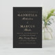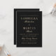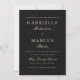Esta sencilla y elegante invitación a la boda presenta un hermoso color negro de tonos azul oscuro con la coordinación de la tipografía clásica blanca dorada.