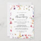 Esta invitación clásica y colorida de aniversario de bodas de 50 años es perfecta para un evento moderno. El diseño presenta flores silvestres amarillas, moradas y blancas con follaje en un fondo de acuarela rosa y verde.